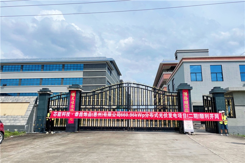 泰昌飾品(惠州)有限公司主營塑料類、玻璃類、布料類等裝飾品加工制造等。本次項(xiàng)目是芯能科技為泰昌飾品(惠州)建成的第二期分布式光伏項(xiàng)目,此前已完成一期0.8MW分布式光伏電站建設(shè)。