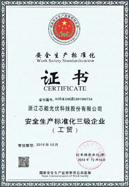 公司通過安全生產(chǎn)標準化三級驗收 2013-12-06 00:00:00 浙江芯能光伏科技股份有限公司 瀏覽次數(shù) 8163 上一條沒有了 下一條“浙江芯能海寧市建材商貿(mào)城1.6MWp光電建筑一體化應(yīng)用示范項目”成功驗收