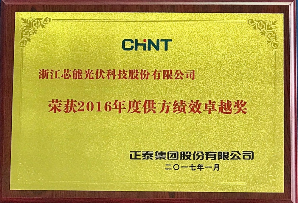 日前,芯能科技榮獲正泰集團股份有限公司頒發(fā)的2016年度供方績效卓越獎。正泰集團作為國內(nèi)的優(yōu)秀企業(yè),近年來一直是浙江乃至中國“走出去”企業(yè)的典范,其在光伏行業(yè)的影響力與日俱增。正泰集團下屬新能源企業(yè)成立初期,芯能科技便與之建立起合作關(guān)系。多年來,芯能科技憑借多晶硅片的優(yōu)異性能、穩(wěn)定質(zhì)量和長期可靠性贏得了正泰的高度認可和信賴,多次榮獲正泰頒發(fā)的優(yōu)秀供應(yīng)商等榮譽獎項。同時雙方在多個領(lǐng)域保持著戰(zhàn)略合作伙伴關(guān)系,在包括項目開發(fā)、技術(shù)研發(fā)等領(lǐng)域開展深度合作。